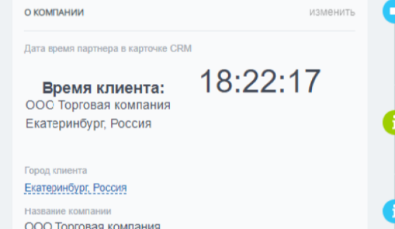 Работать в Битрикс24 стало удобнее: вы всегда видите текущее время клиента прямо в его карточке.