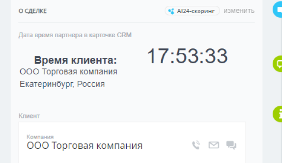 •	Сделка или Лид. Программа будет искать часовой пояс в поле карты карточки crm, которую вы откроете (например, сделка или лид);
